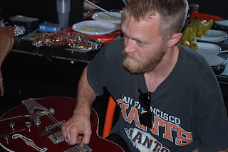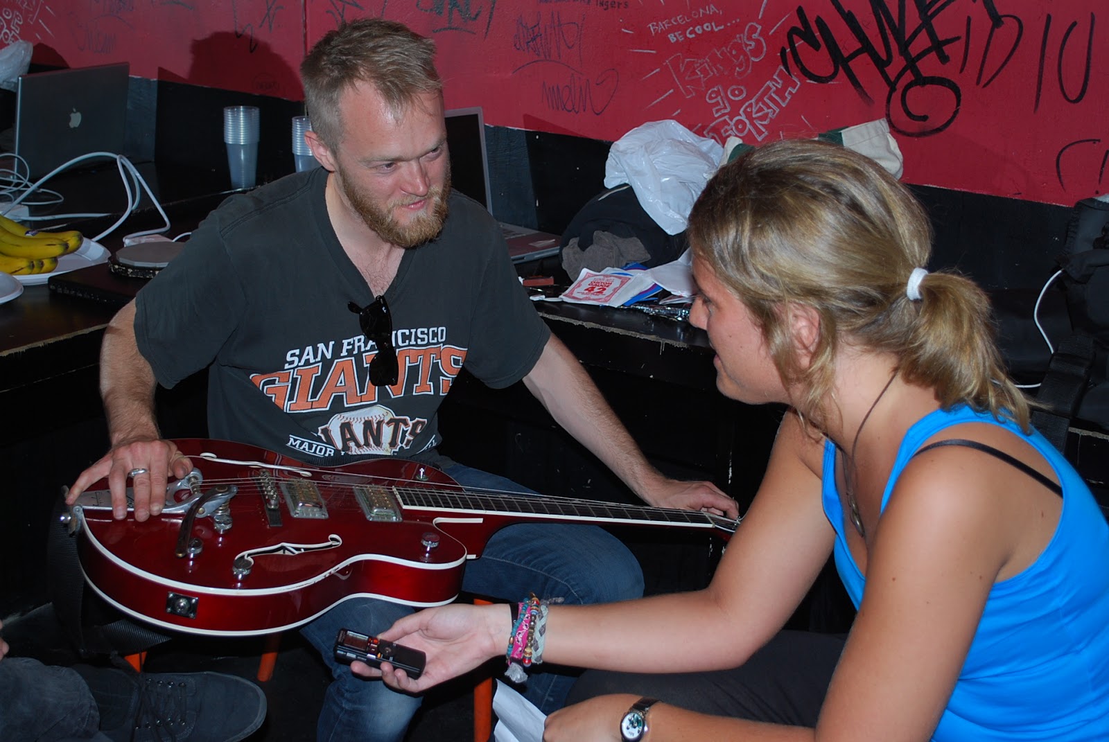 Un par de horas antes tuve la oportunidad de charlar con ellos un rato. Mientras Adam (voces, guitarra y harmónica) cambia las cuerdas de su guitarra, Tyson (batería, voces) nos ofrece una cerveza. Son amables y sonrientes y, aunque algo distantes y parcos en palabras en un principio, poco a poco van abriéndose y nos hacen partícipes de sus opiniones y proyectos.