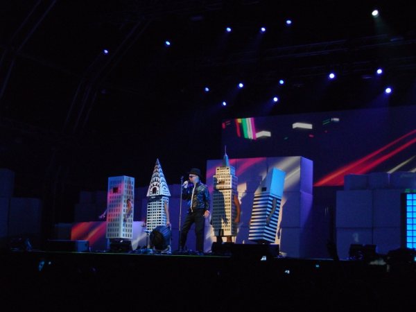 Los Pet Shop Boys se adueñan del festival con una extravagante puesta en escena: mujeres bailongas metidas en cubos de plástico y otros curiosos disfraces según la temática de la canción, y uno de los miembros del grupo, el de la mesa de mezclas, con una planta en la cabeza. No sabemos bien si tienen pretensiones futuristas o sencillamente quieren hacer reír, pero el caso es que tienen su gracia y con canciones como “Go west” “It’s a sin”, “Always on my mind” o “Se a vida e” nos ofrecen un memorable espectáculo de lo más divertido. Nunca hubiera supuesto que un concierto de Pet Shop Boys me hara disfrutar tanto. Qué cosas.
